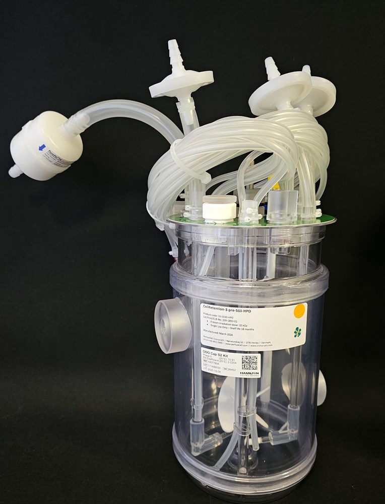 CellRetention ATF kits for converting a batch STF or SUB to SUBmerged P-SUB (Perfusion-Single-Use-Bioreactor) with one free PG13 port for semi-continuous expression of proteins, anti-bodies by cultivation of mammalian cell lines in perfusion mode. Designed to be installed by end-user under sterile conditions – like under the hood. Kit consists of Thalia SUP and SepraPor 0.2 µm pore HFF.
