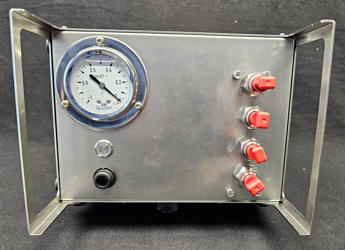 Pressure / vacuum dual storage, one litre each container. Incl one vacuum 40 mm gauge, one pressure 40 mm gauge, two pressure regulators. Suitable for Clotho connection. MOQ: 1 unit |