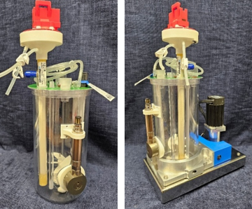 - The SUB mounted in Heating-Support-Foot on top of the Magnetic-Stirring-Table freeing the SUB from the heavy servo motor. InCyte biomass sensor installed on the SUB side wall.