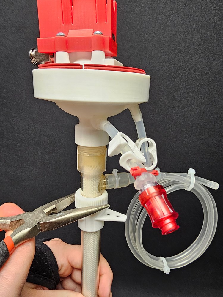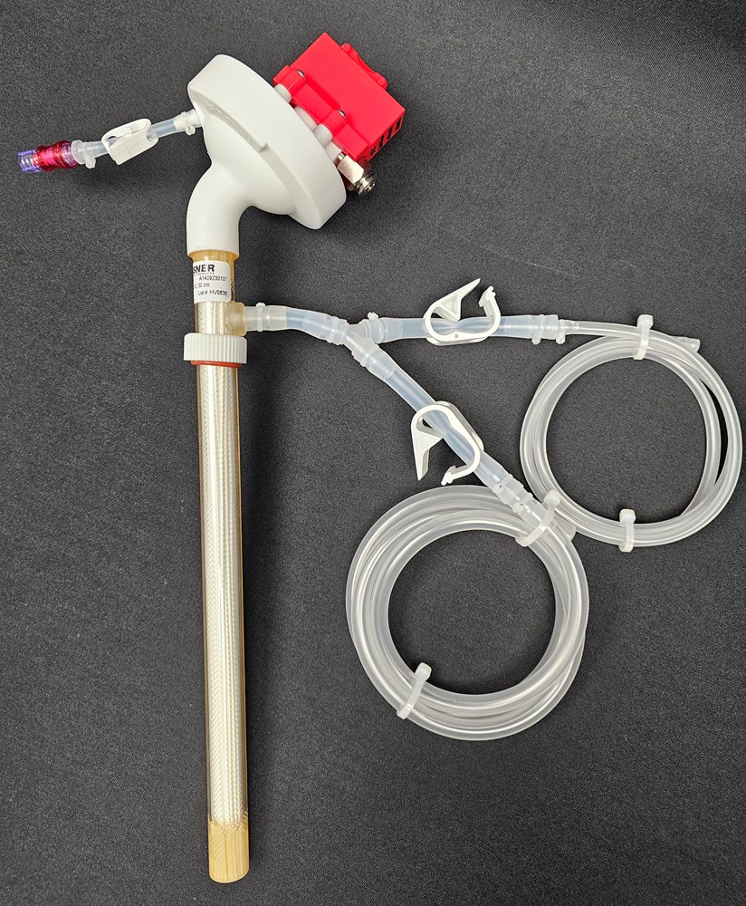 Two different "CellRetention-3-kit-x" delivered bagged and E-beam irradiated ready to be inserted in the 3 liter B-SUB through the ID19 mm port in the hood and thus become CellRetention P-SUBmerged. Both the Straight and the Angled Thalia is a Direct-Fit with the SepraPor C112-xx1x - 0.2 µm pore HFF with 420 cm2 surface. Choose Straight or Angled Thalia as needed from Commerce. Third photo illustrates a demo of the Straight for MST drive and a demo of the Angled for HPD drive with a Teknic servo motor on head plate.