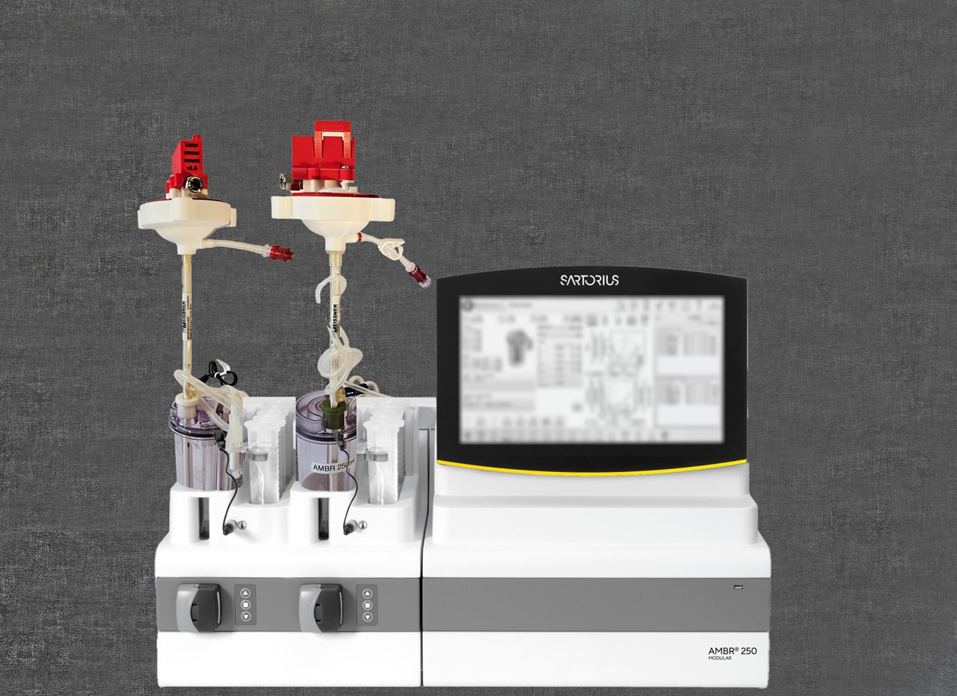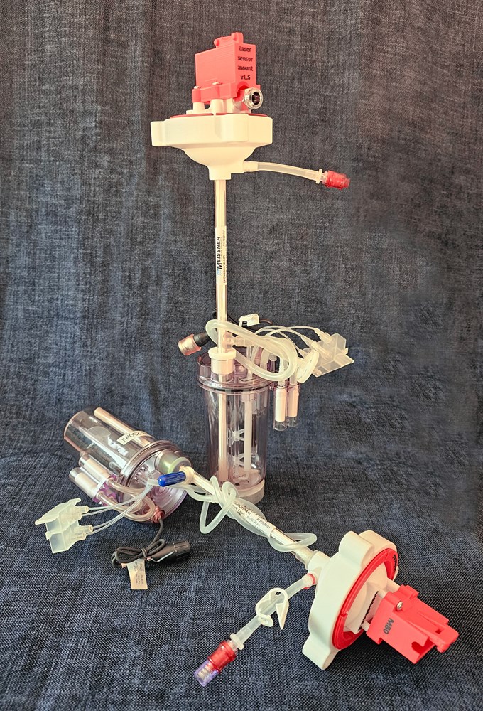CellRetention 250 ml P-SUBmerged unique arrangement integrates all 3 components in one unit for very easy Modular PCS installation. Modular takes care of agitation, aeration, pH, DO and media. Clotho drive unit controls Thalia which takes care of ATF perfusion and protects the HFF.