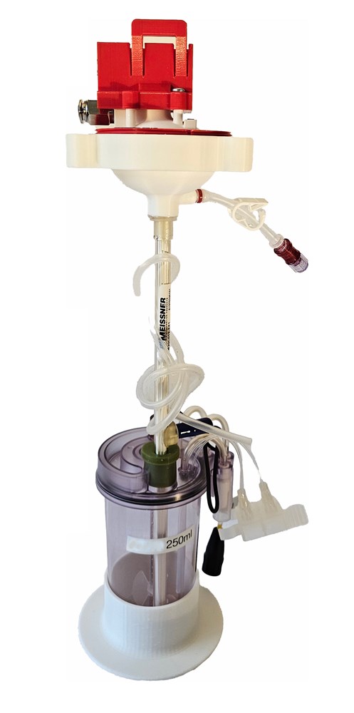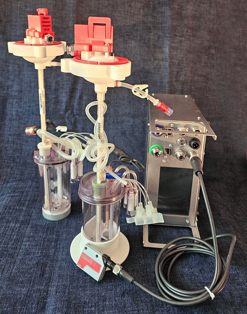 Clotho Drive Unit integrates pressures, vacuum, volume sensing eliminating the need for external sensors for TMP, pressure drop, mass-flow measurements. Clotho process software controls accurately the programmable stroke volume, number of strokes, the allowed pressure drop along the HFF for fully automatic broth low harvest velocity and fully selectable broth high velocity for the sequential lumen cleaning eliminating HFF blockage.