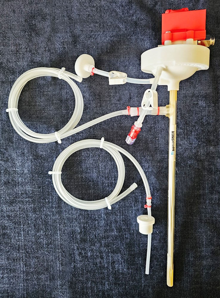 Installation guide (inside the hood) is this simple - remove the 20 mm sample port plug, insert the white silicone plug into the sample port, add a suitable drop of liquid to the HFF as lubricant and push the HFF through the silicone plug to 10-15 mm above SUB bottom - that’s it !!
