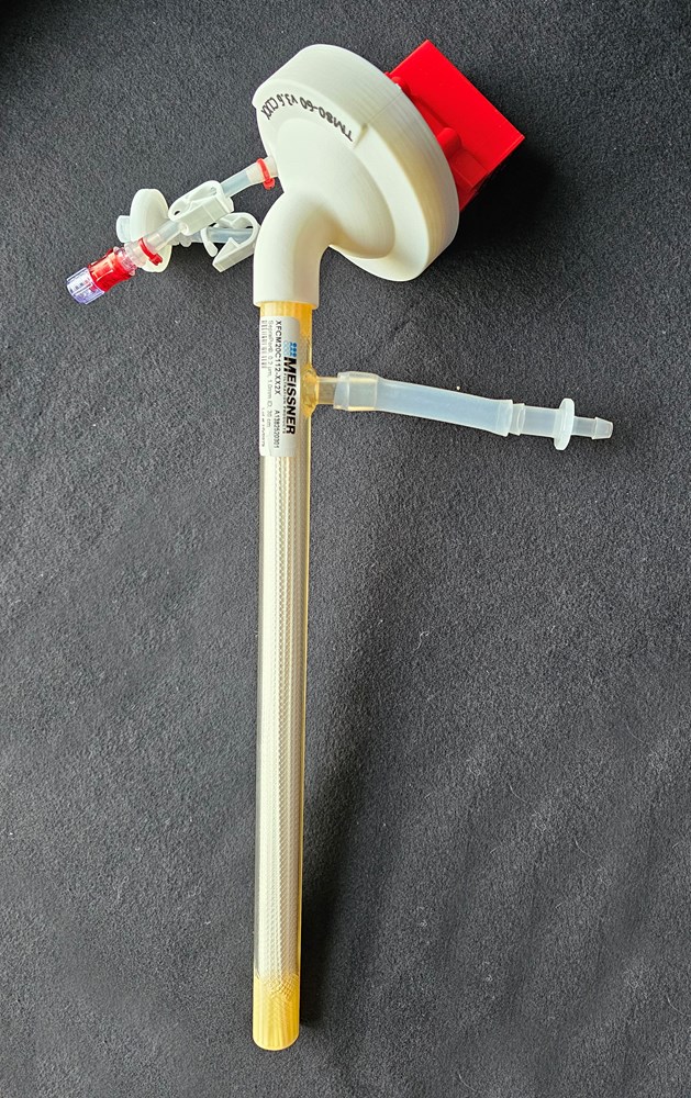 Two different "CellRetention-3-kit-x" delivered bagged and E-beam irradiated ready to be inserted in the 3 liter CellVessel SUB through the ID19 mm port in the hood and thus become P-SUBmerged. The straight Direct-Fit Thalia ID19 mm tube part and the angled Direct-Fit Thalia connected to the SepraPor C112 HFF - as selected.