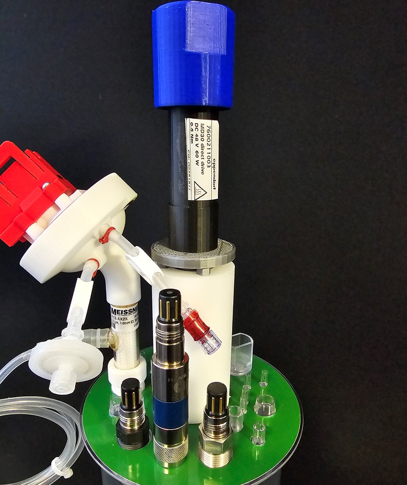 Maxon RE30 in 3 different examples - a 1 liter P-STR, a 500 ml P-SUB with mechanical drive. CellMembra converted BioBLU 0.3 with magnetic drive in DASbox.