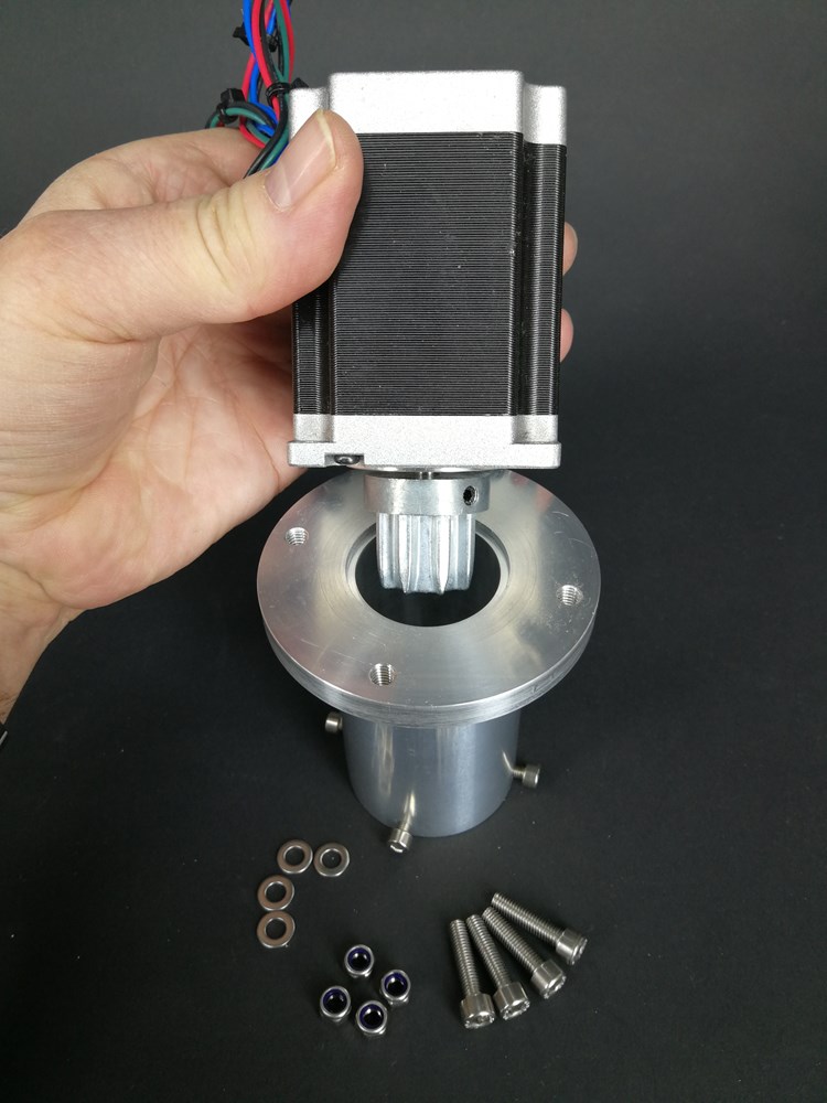 The Teknic motor used for years by Finesse and now Thermo-Fisher here shown on a 13 liter P-SUB. NEMA 20 step motor inserted in an ID39-B adapter.