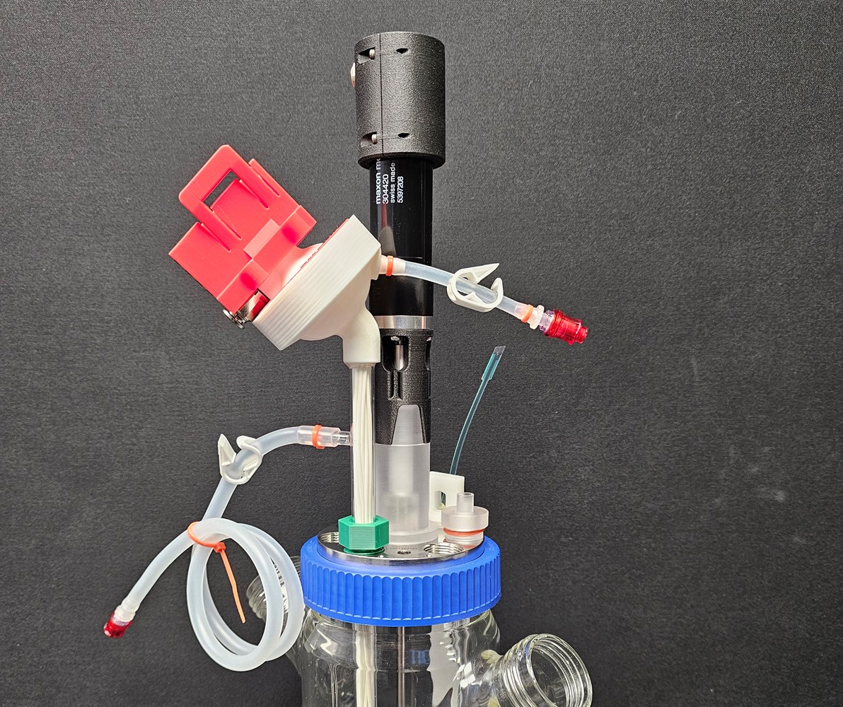 Standardization is good for all of us. The Applikon servo motor adapter concept with OD25 mm nose and spring coupling for OD8 mm axle are widely used. Shown here the Maxon RE30 DC geared servo motor from the SciVario PCS.
