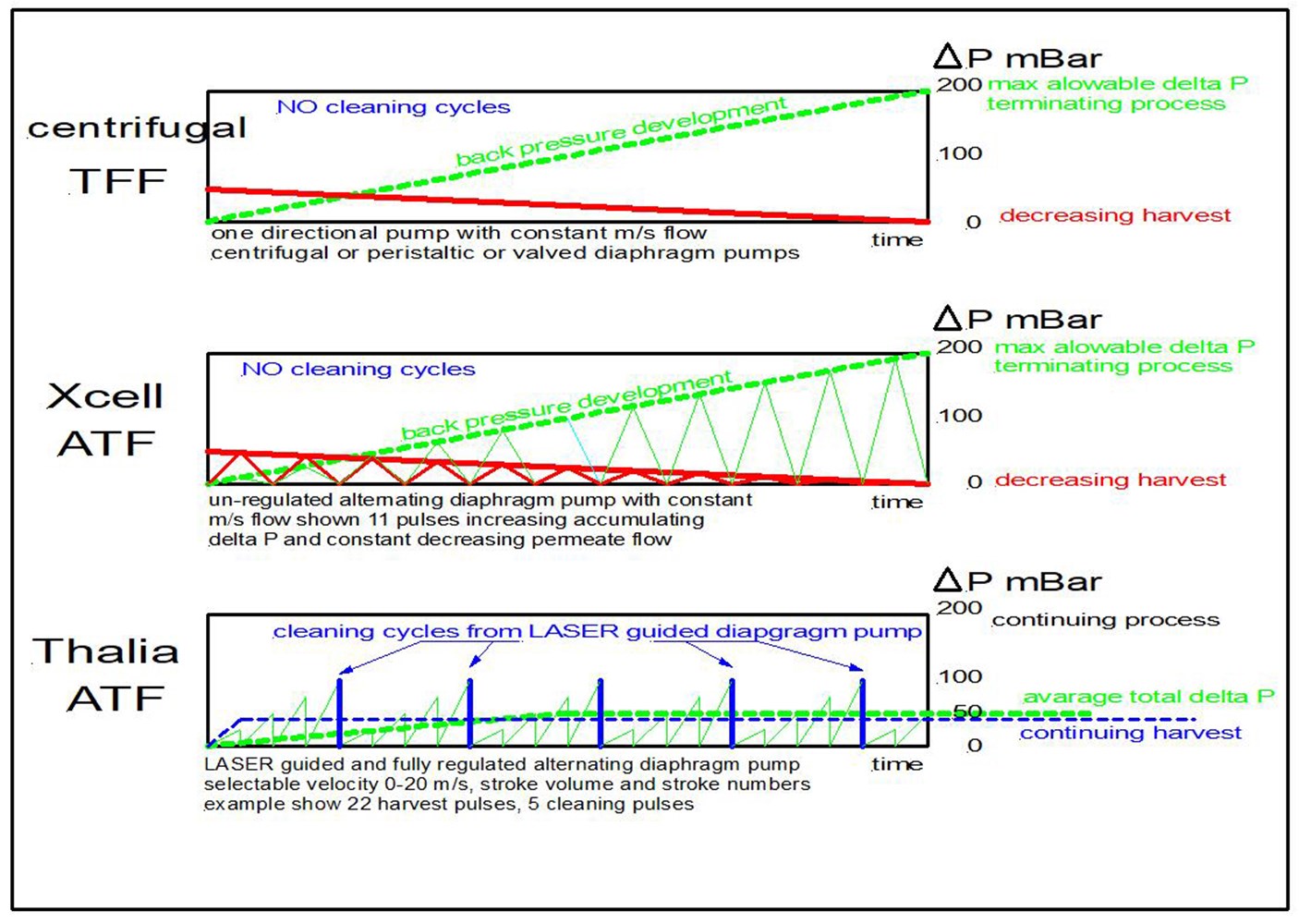 This simple chart illustrates differences in HFF conditions seen from pressure drop and fouling according to the chosen pump system.